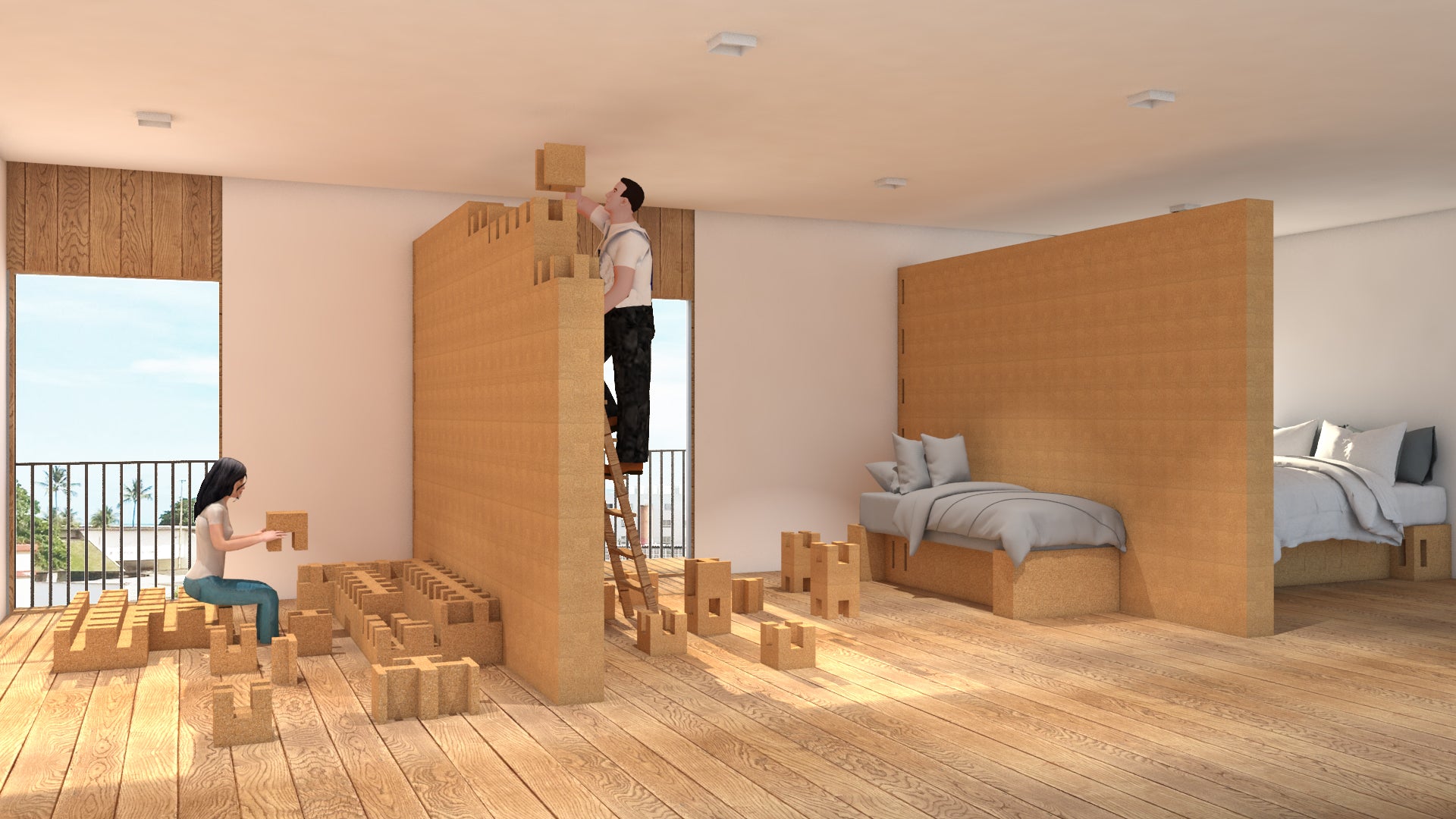 Corkbrick is an innovative, Lego-like system that empowers individuals to design and build custom structures without the need for tools, screws, or glue. Crafted entirely from natural and sustainable cork, this clever modular solution offers infinite possibilities for creative, functional, and eco-friendly designs, both indoors and outdoors. Cork, is inherently water-resistant, insulating, fire-retardant, and sound-absorbing, making it an exceptional choice for modern, adaptable design. Its elasticity and high compressibility allow for seamless assembly and disassembly without compromising the integrity of the blocks, ensuring long-lasting performance. Its lightweight yet durable construction ensures stability while maintaining ease of use, making it accessible to anyone, from seasoned designers to DIY enthusiasts or even those new to creative projects. This dynamic system aligns with the growing demand for flexible, natural, and sustainable living solutions. Corkbrick combines utility and style, making it perfect for creating everything from temporary partitions to long-term furniture, offering a sustainable alternative to traditional materials. Applications include modular furniture, creative space configurations, and versatile architectural solutions in homes, offices, and public spaces.